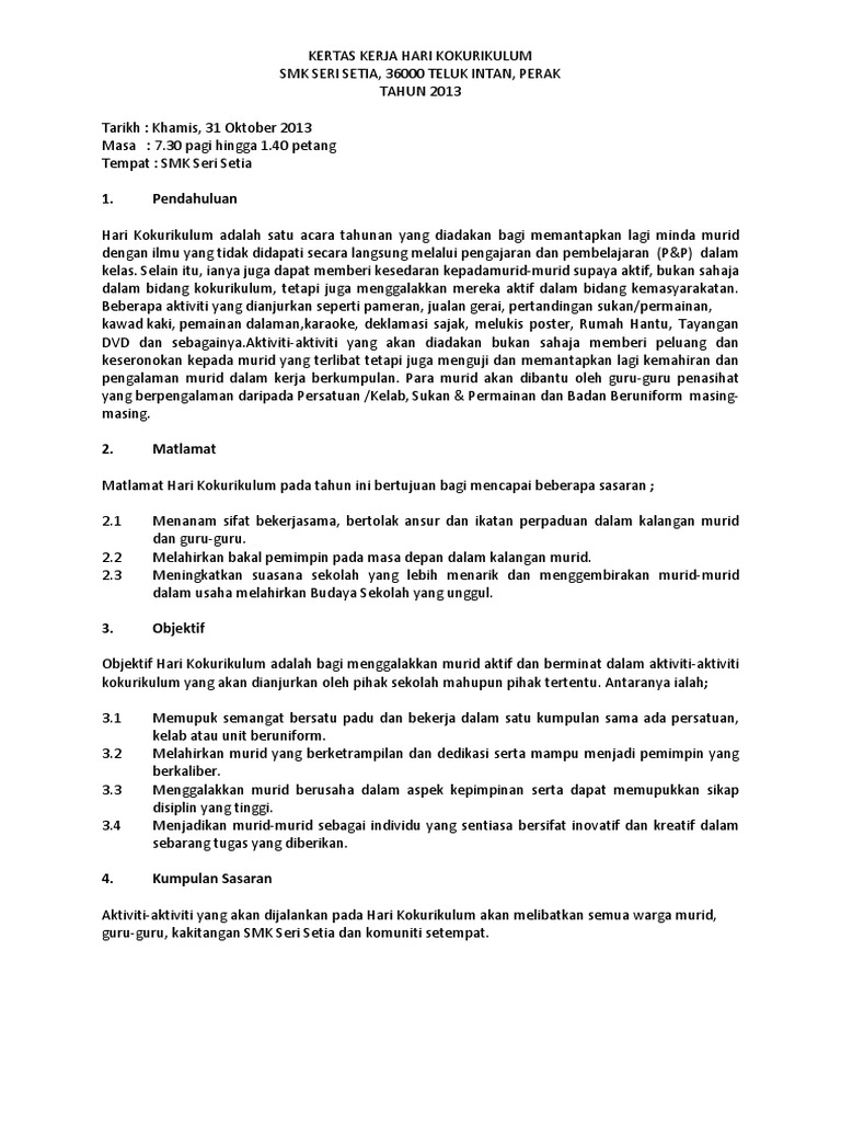 Kertas Kerja Hari Kokurikulum Pdf