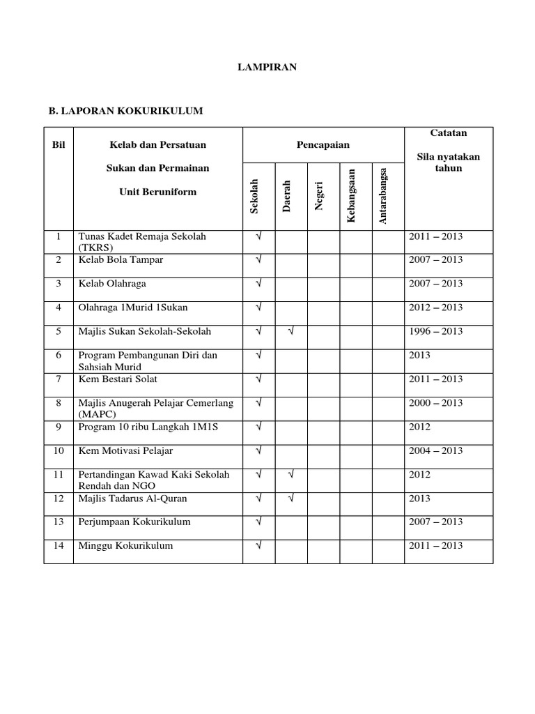 Lampiran Laporan Kokurikulum Untuk Urusan Kenaikan Pangkat Pdf